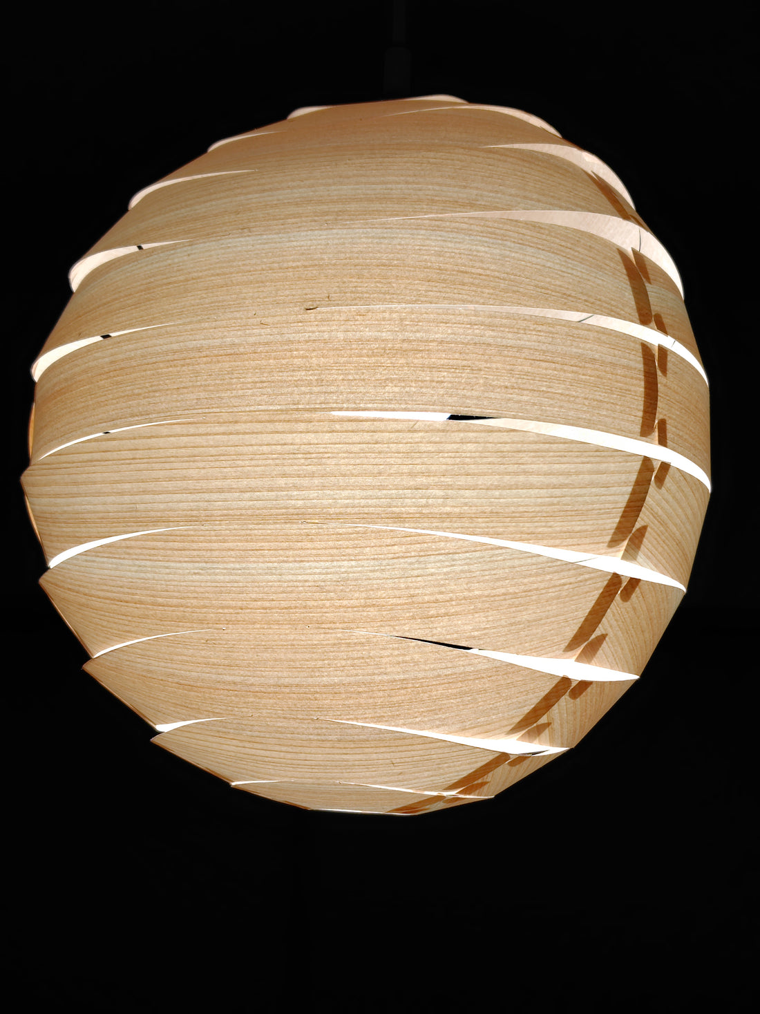 Jupiter - Origami-inspired spherical Hinoki pendant light | Jupiter(木星)|折り紙発想・球体ヒノキシェードのペンダントライト